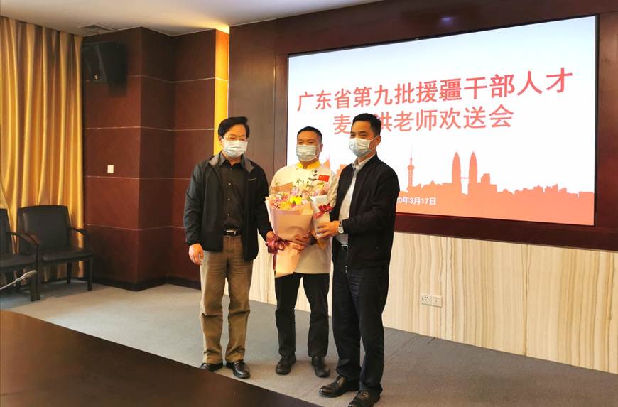 3月17日上午,taptap在1117会议室举行广东省第九批援疆干部人才麦盛洪老师欢送会。学校领导夏伟、刘毓,党委委员储晓鸣、陈文海、甘慕仪,相关部门负责人和代表出席了欢送会。受广东省委和学校党委派遣,麦盛洪老师将以中餐教师身份,赴新疆伽师县中等职业技术学校开展为期一年半的援疆工作。