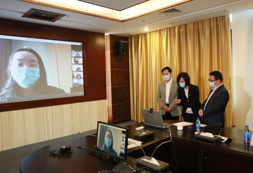 区领导唐磊晶、蔡伟,学校校长夏伟通过视频连线慰问学校在鄂师生以及援鄂校友代表
