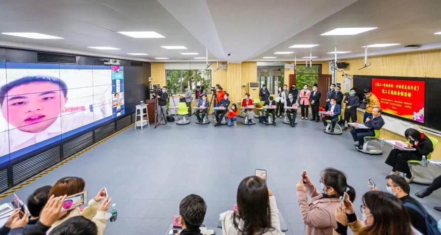 郭文海书记在区教育发展中心与taptap学生视频连线互动交流现场。(来源:珠江商报公众号)