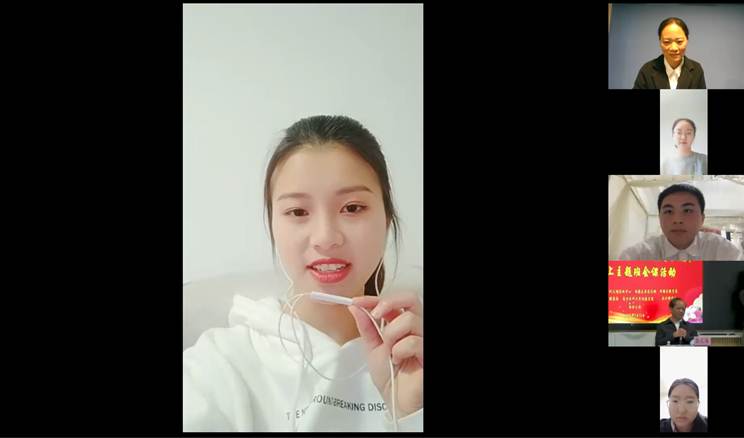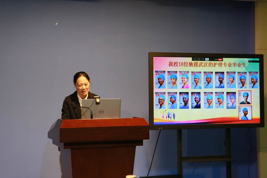 黄敏娟老师在录播室组织班会,介绍taptap护理专业校友抗疫事迹