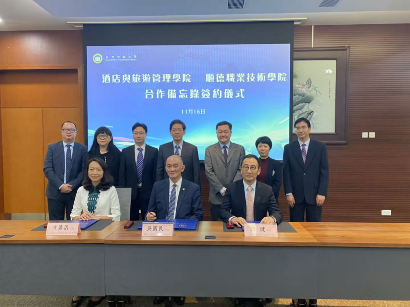 11月16日,taptap副校长罗丹,酒店与旅游管理学院、烹饪学院、外语外贸学院(国际教育交流中心)相关负责人参与了由顺德区人民政府组织的“澳门-顺德合作交流团”,访问了澳门科技大学、澳门旅游学院,并与澳门科技大学签订了校际合作协议。顺德区归国华侨联合会主席黄建雄、区推进粤港澳大湾区建设领导小组办公室副主任邱国盛及区统战部、区发展和改革局的相关工作人员参与了出访任务,并出席见证了签约仪式。