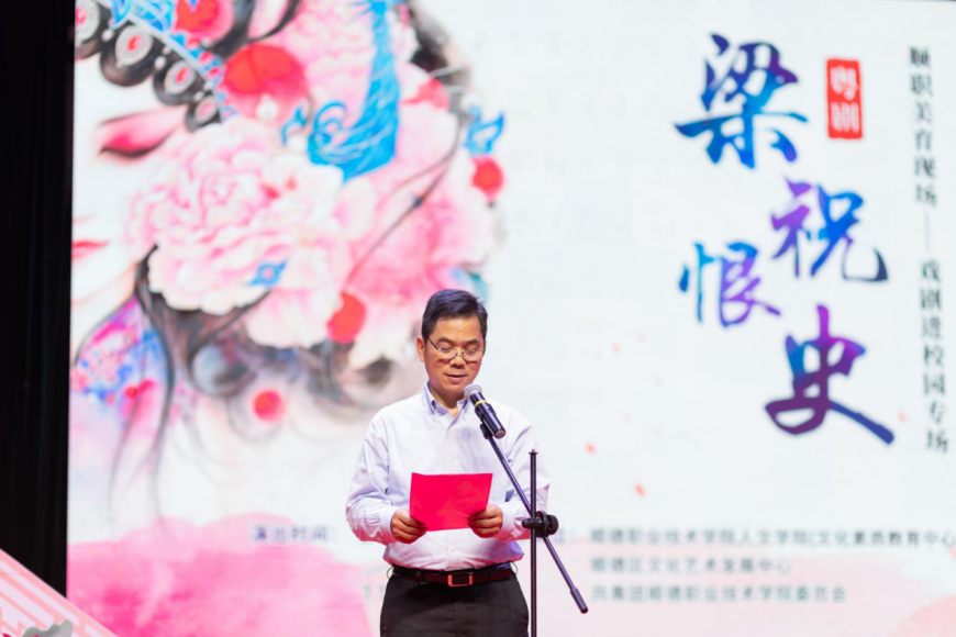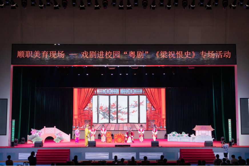 11月6日晚上,由taptap人文学院(文化素质教育中心)、校团委和顺德区文化艺术发展中心联合主办、顺德区艳阳天粤剧团出演的“顺职美育现场”—戏剧进校园“粤剧”《梁祝恨史》专场活动在梁銶琚堂举行。顺德区委宣传部副部长、文联主席何鸿佳,顺德区文化艺术发展中心副总干事俞虹,学校党委副书记、副校长刘毓,学校有关职能部门负责人、师生共800人参加了本次活动。