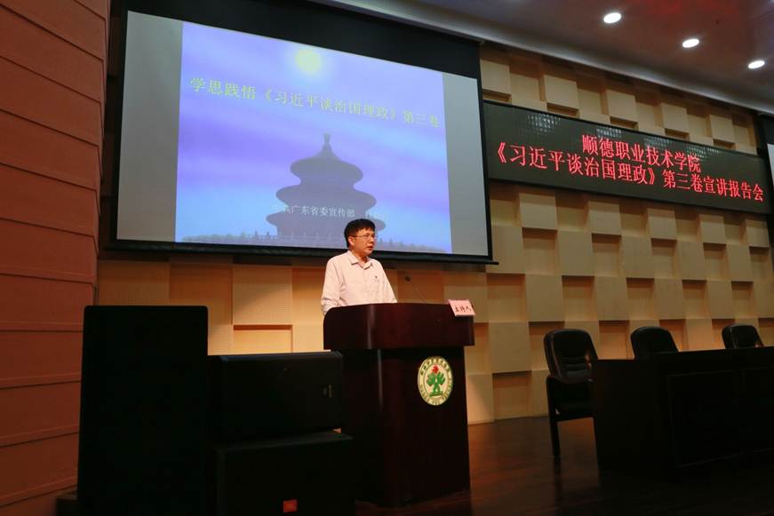 10月14日,taptap在学术报告厅举行《习近平谈治国理政》第三卷宣讲报告会,邀请广东省委宣传部副部长、《习近平谈治国理政》第三卷省委宣讲团成员杜新山作“牢牢把握坚持以人民为中心这一主线”专题辅导授课。报告会由学校党委书记李先祥主持。学校党政领导班子成员,全体教职工参加了报告会。