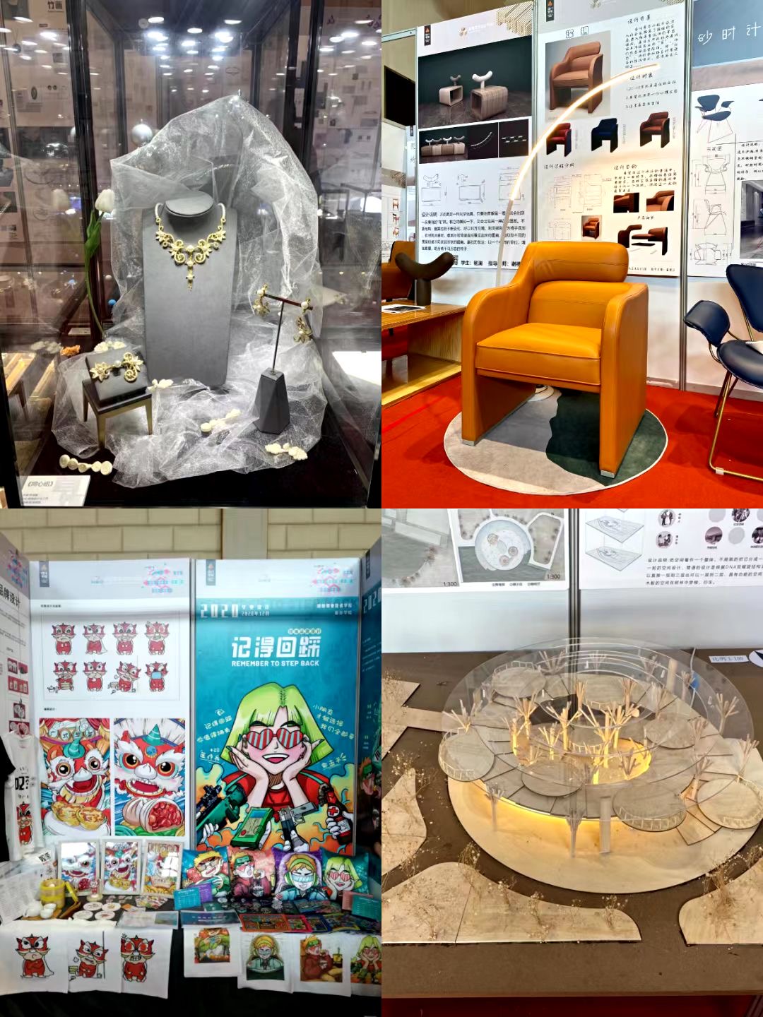 本次展览涵盖了应届毕业生毕业作品、设计学院成果、校企合作案例、教师代表作品和校友创新创业典型案例。其中毕业作品共展出家具艺术设计、家具设计与制造、工业设计、首饰设计与工艺、建筑设计、环境艺术设计、风景园林设计、园林技术、视觉传播设计与制作、数字媒体艺术设计、展示艺术设计等专业共774名毕业生的作品。展会亮点主要体现在信息化、产业化和系统化等方面,具体表现在企业现场宣讲、展览手段信息化,展示作品贴近产业、能更好服务社会。在“项目导向+平台依托+成果转化”的教学模式引领下,这些作品在内容上既符合相关产业的要求又适应了社会转型升级中企业对复合型人才的需求,具有很强的时代性、针对性和实用性,呈现了师生的创新能力。