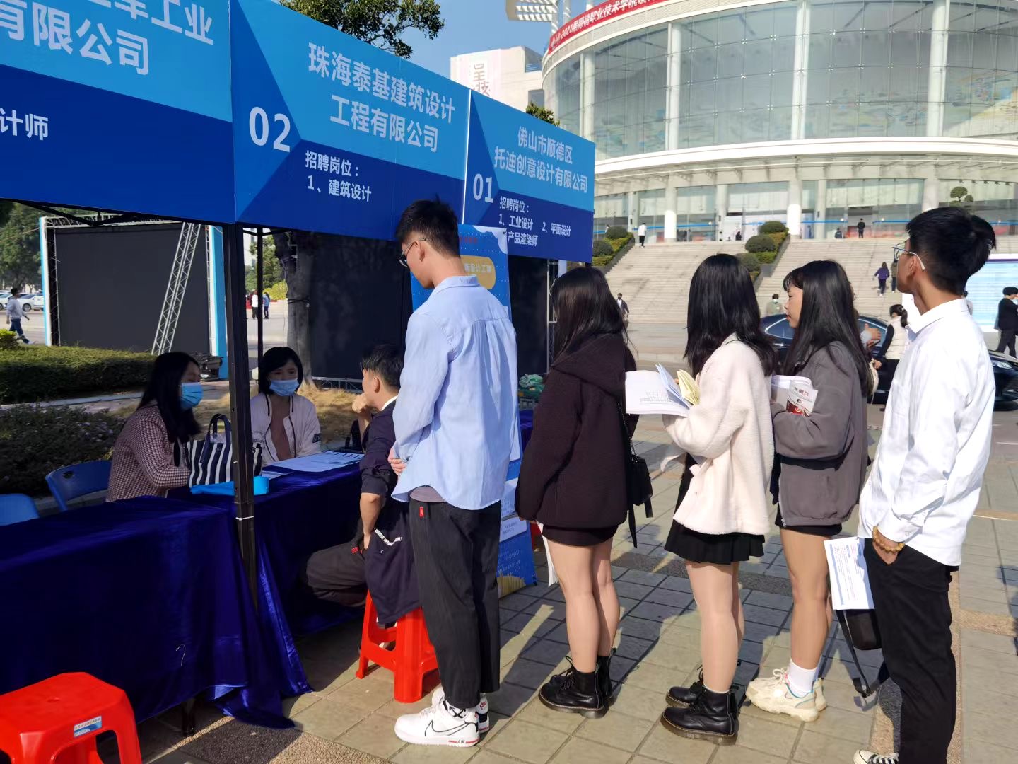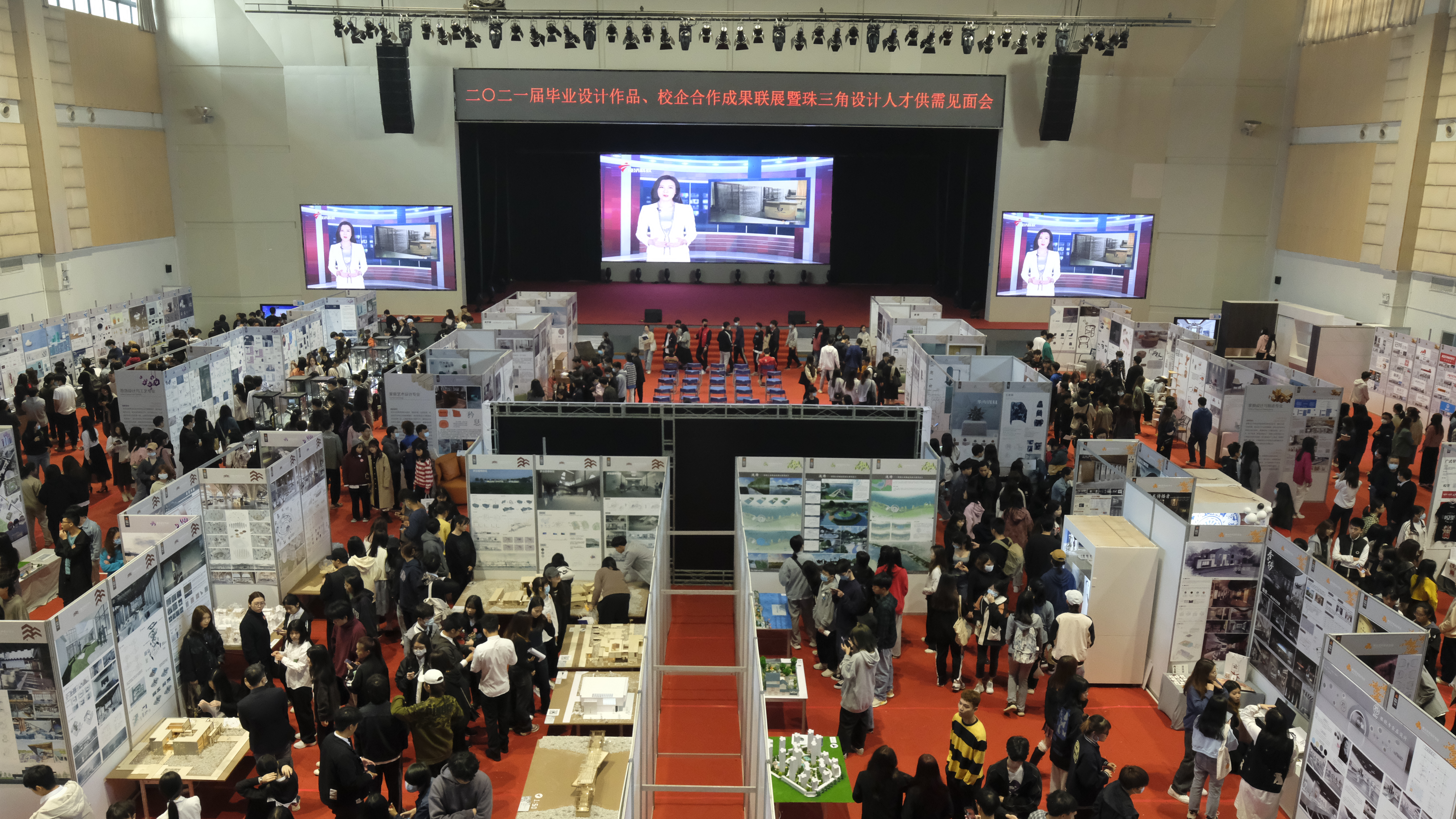 12月28日,设计学院2021届毕业设计作品展暨珠三角设计人才供需见面会在梁銶琚堂和设计学院门前广场举行。taptap副校长黄健光,相关行业协会领导,企业负责人,设计学院全体师生,学校其他部门老师和学生共计2500多人参加了当天的活动,人才供需见面会吸引了来自珠三角地区的250多家企业前来招聘。