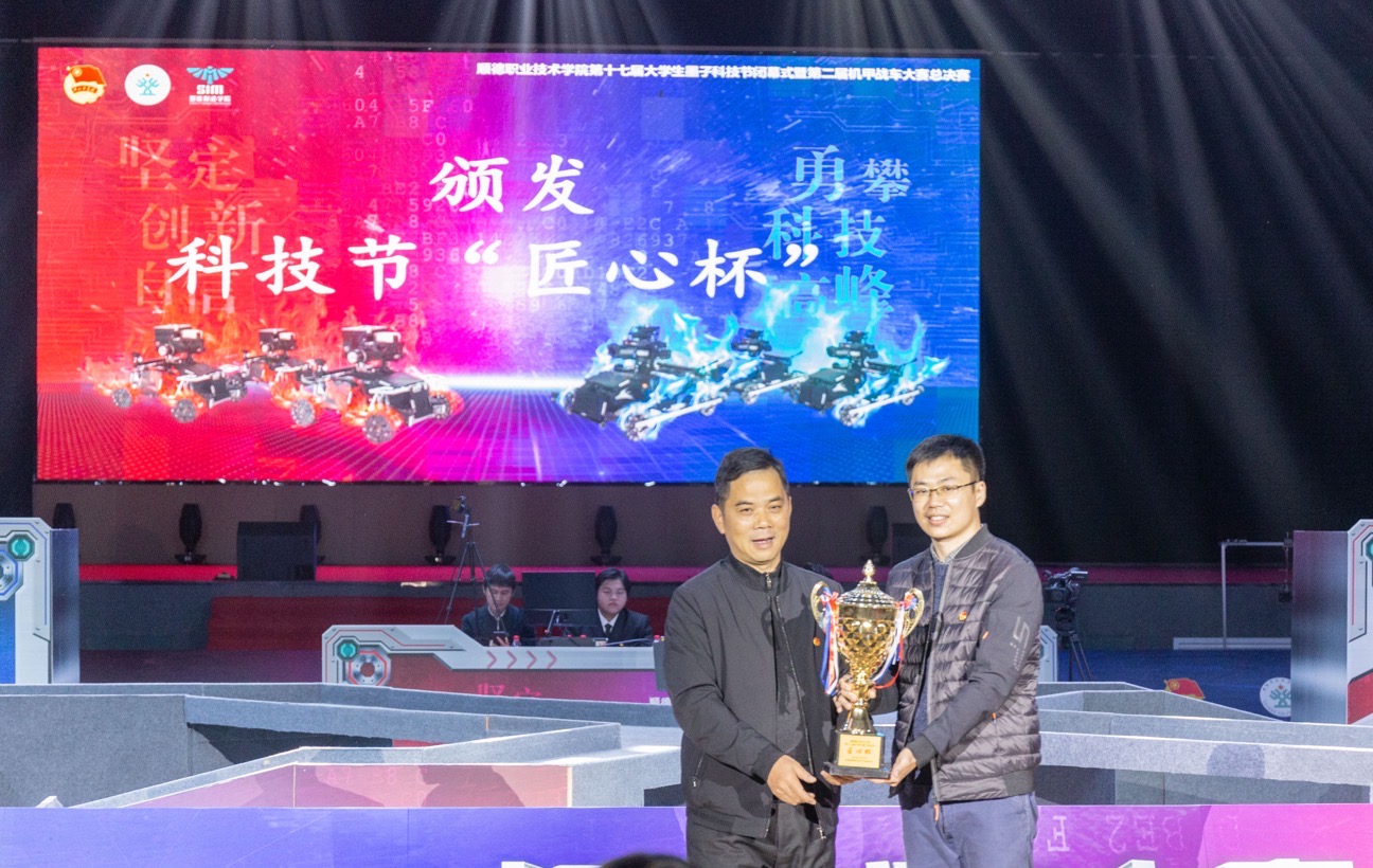 12月30日晚,第十七届大学生墨子科技节闭幕式暨第二届机甲战车大赛总决赛在taptap梁銶琚堂隆重举行。学校党委副书记、副校长刘毓,党委委员、党委宣传部部长汤恺,学工部、校团委、顺大公司负责人,各二级学院党总支书记、团委书记,智能学院相关老师、顺德一中相关老师,现场师生共计430余人参与活动。