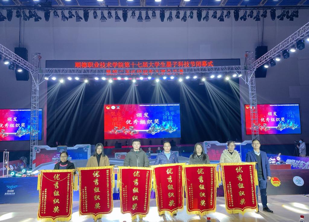 闭幕式现场举行了颁奖仪式,6个学院荣获优秀组织奖,烹饪学院获本届科技节“匠心杯”奖项。