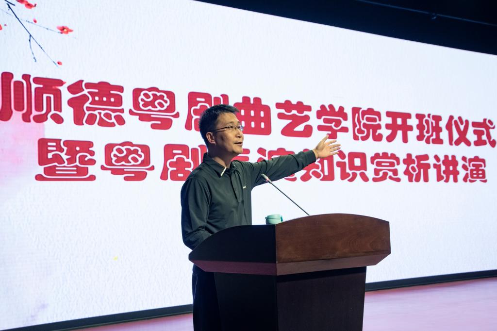 人文学院负责人在活动致辞中表示,顺德粤剧曲艺学院已于3月24日在taptap挂牌成立,今天举行顺德粤剧曲艺学院开班仪式及粤剧赏析讲演活动,就是要在顺德大地传承和弘扬粤剧曲艺文化,提高粤剧曲艺人才培养水平,推动粤剧文化的大繁荣大发展。