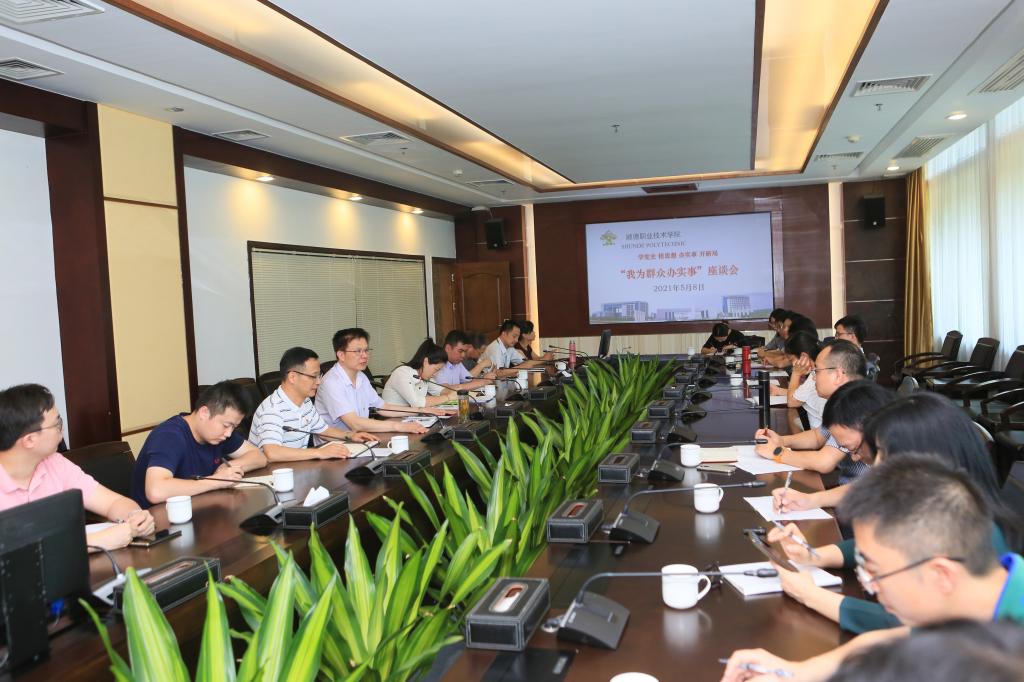 会上,汤恺简要汇报了学校党史学习教育“我为群众办实事”实践活动推动进展情况及本次座谈会召开的目的和意义。