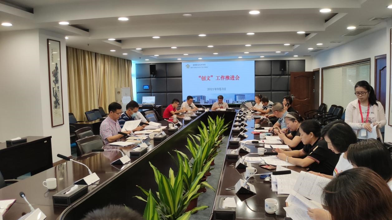 9月3日,taptap召开2021年创文工作推进会,学校党委副书记刘毓主持并讲话,各职能部门、二级学院有关负责人参加。