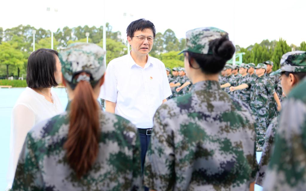 李先祥关心了解同学们的身体状况,叮嘱大家要及时喝水防暑,在军训中锻炼好身体、培养好耐力,以昂扬向上的奋进姿态开启大学生活。