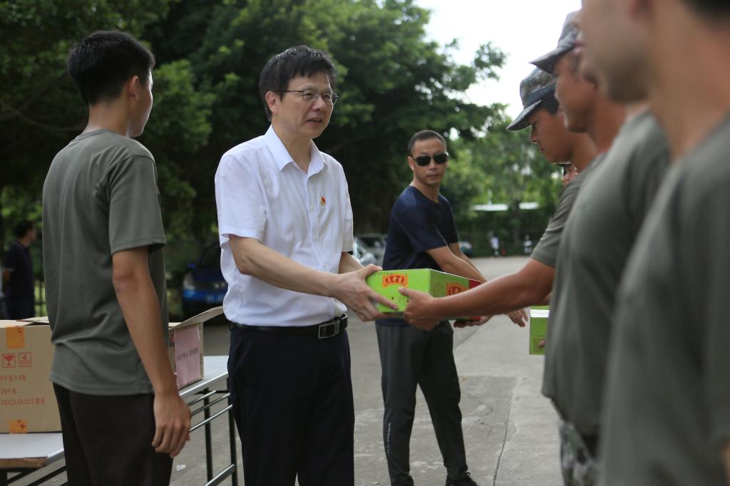 9月19日上午,学校党委书记李先祥在学生工作部有关负责人陪同下来到2021级新生军训现场,了解新生军训及入学教育安排、训练进度、后勤保障等情况,看望慰问承训教官,为教官们送去避暑饮料、中秋月饼等慰问物品。