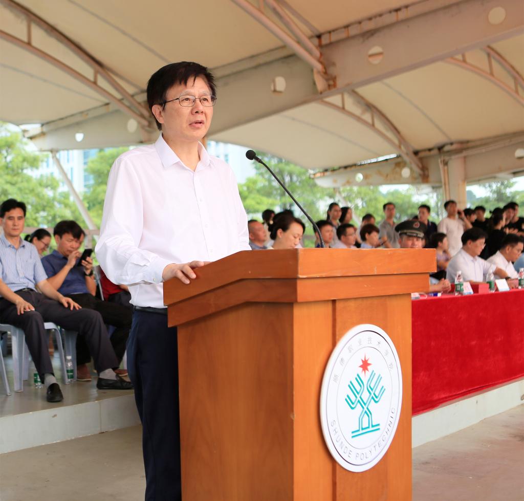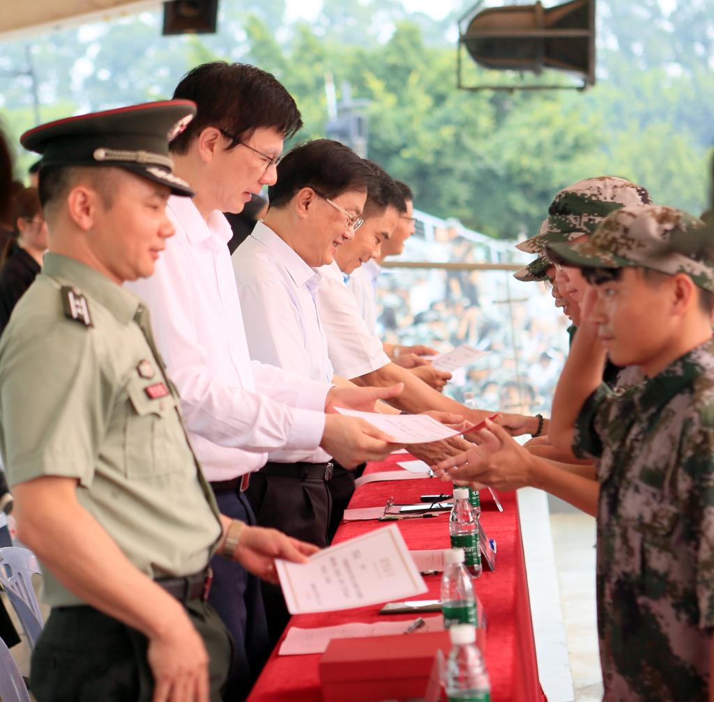 学校党委书记李先祥作总结讲话。他说,同学们在军训中用汗水浇铸出来的坚毅品质和用纪律形成的优良作风,必将成为三年大学生活奋进笃学、立志成才、报效祖国的不竭动力。同学们作为与新时代同向、同行、共同前进的一代,生逢盛世,也肩负重任,希望大家做有志气、有骨气、有底气的青年,不负党和人民的殷切期望。