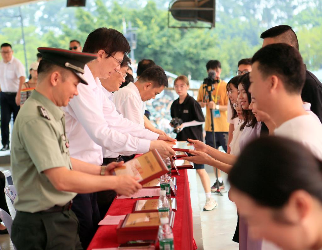 罗丹宣读了表彰决定,学校领导向优秀教官、军训标兵、优秀军训团体代表颁发了证书和奖牌。经过为期14天的军训,2021级新生增强了体魄、磨炼了意志、锤炼了思想、学会了团结,展现出顽强拼搏、意气风发的良好精神风貌。