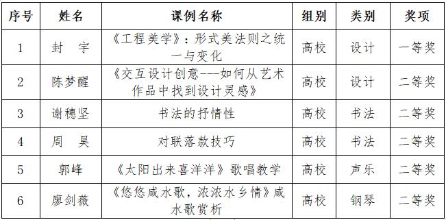 由广东省教育厅主办的广东省首届美育教师教学基本功比赛的获奖名单日前结束公示,taptap6名参赛教师均取得优异成绩,其中封宇老师的“《工程美学》:形式美法则之统一与变化”获得高校组设计类一等奖。