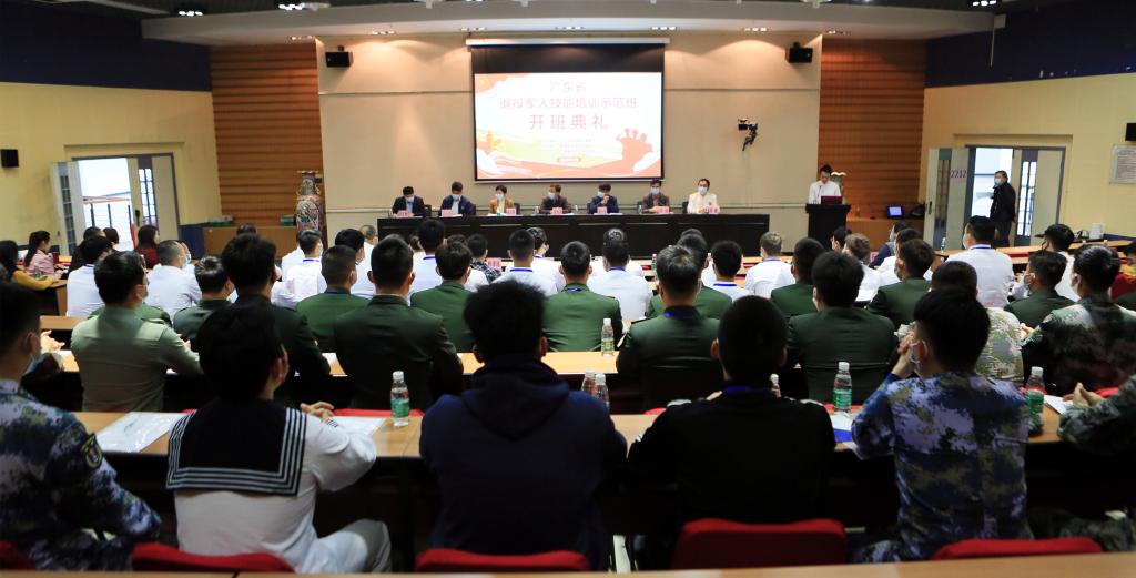 广东省退役军人事务厅就业创业处二级调研员朱俊宏、三级主任科员刘炜,佛山市退役军人事务局移交安置与就业创业科科长易欣晖、副科长刘颖文,顺德区退役军人事务局副局长刘永孙、移交安置与就业创业科科长李坚,学校党委委员、副校长杨小东,学校资产与设备管理处、烹饪学院、顺德厨师学院负责人和教师等参加开班典礼。