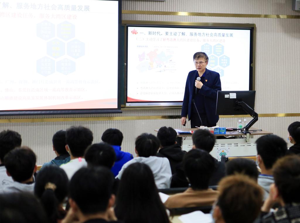 青年大学生要在国家发展进步的进程中有所作为,首先要了解国情、认识社会。李先祥要求同学们认真学习习近平总书记对广东提出的“四个方面”的工作要求,主动了解粤港澳大湾区建设任务、新时代佛山发展目标任务、新时代顺德发展动态。“省委赋予佛山顺德新的重大机遇、重大使命、重大利好,高质量发展需要数以万计、百万计高素质技术技能型人才。”李先祥指出,同学们要珍惜历史机遇,在服务地方社会高质量发展中成长成才。