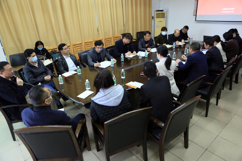 马克思主义学院负责人介绍了学院近年来建设发展情况,就学院教师队伍建设、课程建设、科研工作、企业工作室建设、社会服务工作、基础设施建设等方面情况进行了汇报。