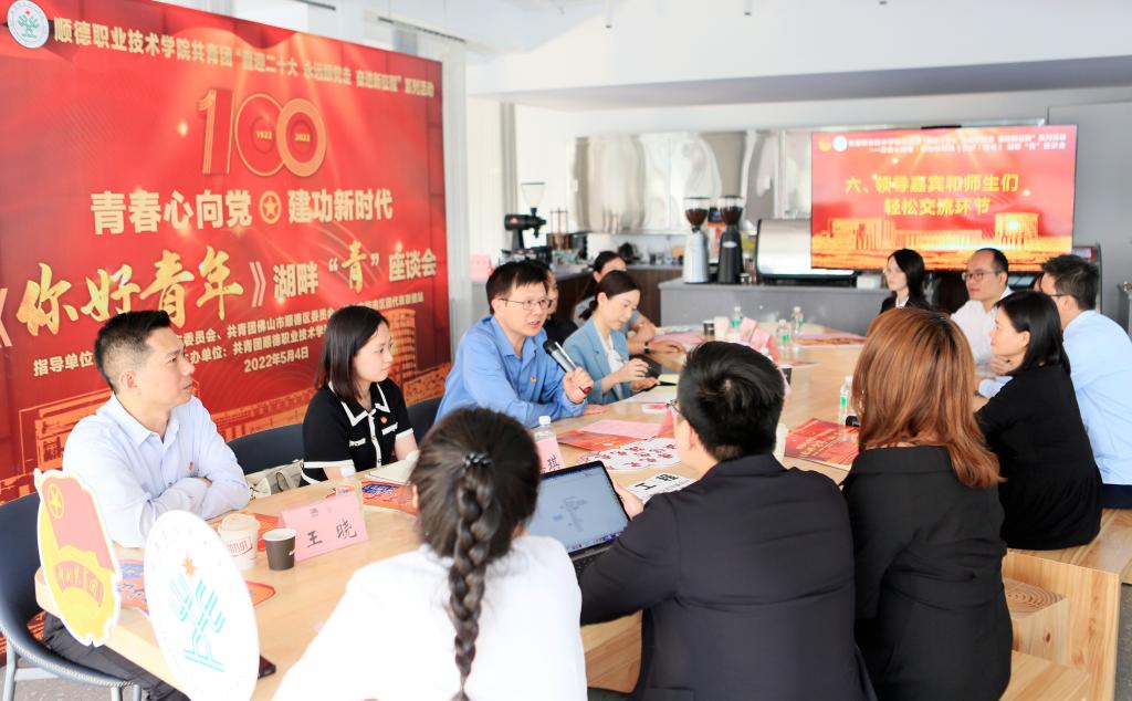 为深入学习贯彻习近平总书记在中国人民大学考察时的重要讲话精神,在纪念五四运动103周年、庆祝中国共产主义青年团成立100周年之际,5月4日下午,taptap共青团“喜迎二十大 永远跟党走 奋进新征程”系列活动之一——《你好,青年》湖畔“青”座谈会在美丽的碧桂湖畔举行。共青团佛山市委副书记陈颖、共青团顺德区委副书记简嘉琪、学校党委书记李先祥、学校党委副书记刘毓,以及校团委全体教师和taptap青年师生代表参加活动。