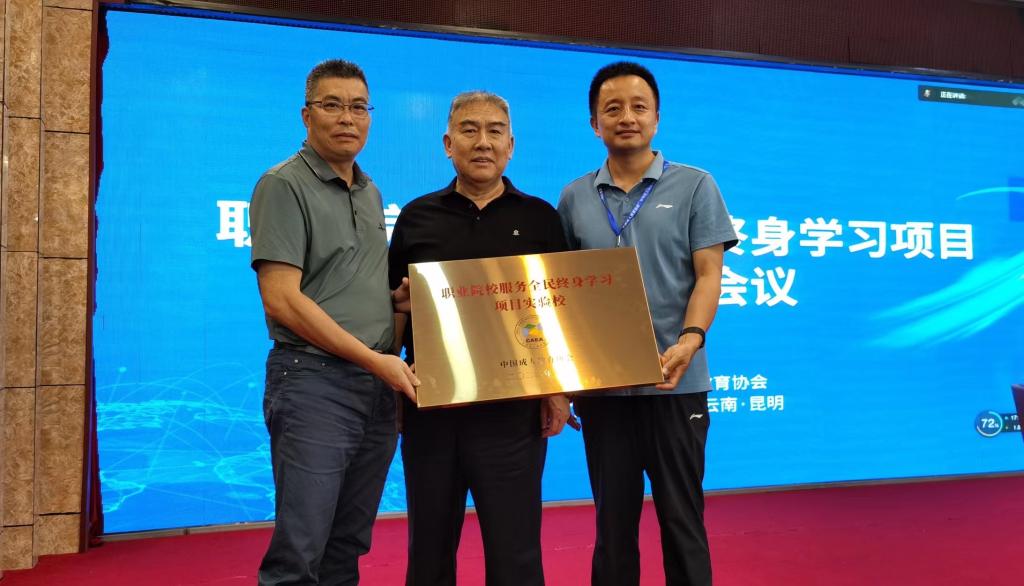 7月11日至15日,全国“职业院校服务全民终身学习”项目推进会议在云南昆明召开,会议期间进行了职业院校服务全民终身学习项目实验校授牌仪式,继续教育学院负责人代表学校接收“职业院校服务全民终身学习项目实验校”牌匾。