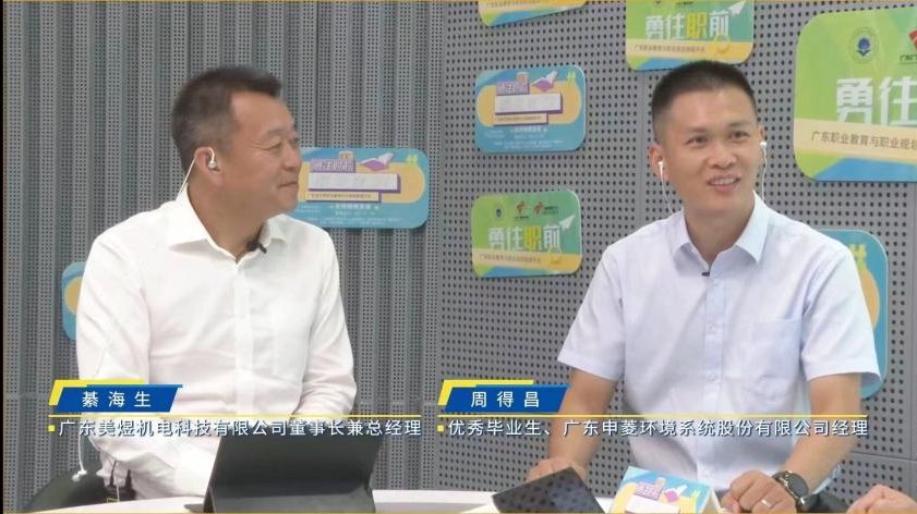 广东美煜机电科技有限公司董事长兼总经理綦海生、广东申菱环境系统股份有限公司经理周得昌分别作为企业代表和优秀毕业生代表一同参加节目录制。