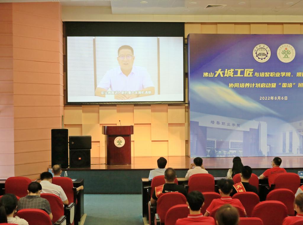 教育部职业教育与成人教育司职业院校发展处处长任占营通过视频方式为活动致辞。佛山市教育局二级调研员李忠,学校党委书记李先祥,培黎职业学院副院长吴全民,学校党委副书记刘毓,学校党委委员、副校长杨小东,广东优质高职院校协作支持培黎职院工作组办公室主任徐言生,学校有关职能部门和二级学院负责人,参加协同培养项目的“佛山·大城工匠”及其所在企业代表,参加“国培”班的全体学员,参加协同培养项目的全体师生等参加活动。启动仪式由学校党委委员、组织人事处处长陈文海主持。