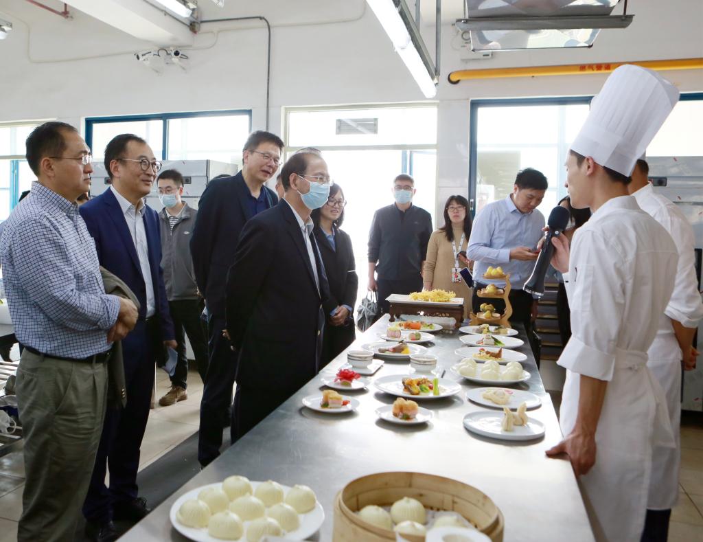 调研组参观考察了烹饪学院(顺德厨师学院)实训中心,详细了解taptap深入实施“粤菜师傅”工程,以“一人学厨,全家幸福”为宗旨,探索“名校联名店,名店出名厨,名厨带名徒,名徒成名厨”模式,打造烹饪技能人才高地,深化东西协作,助力乡村振兴的做法和成效。