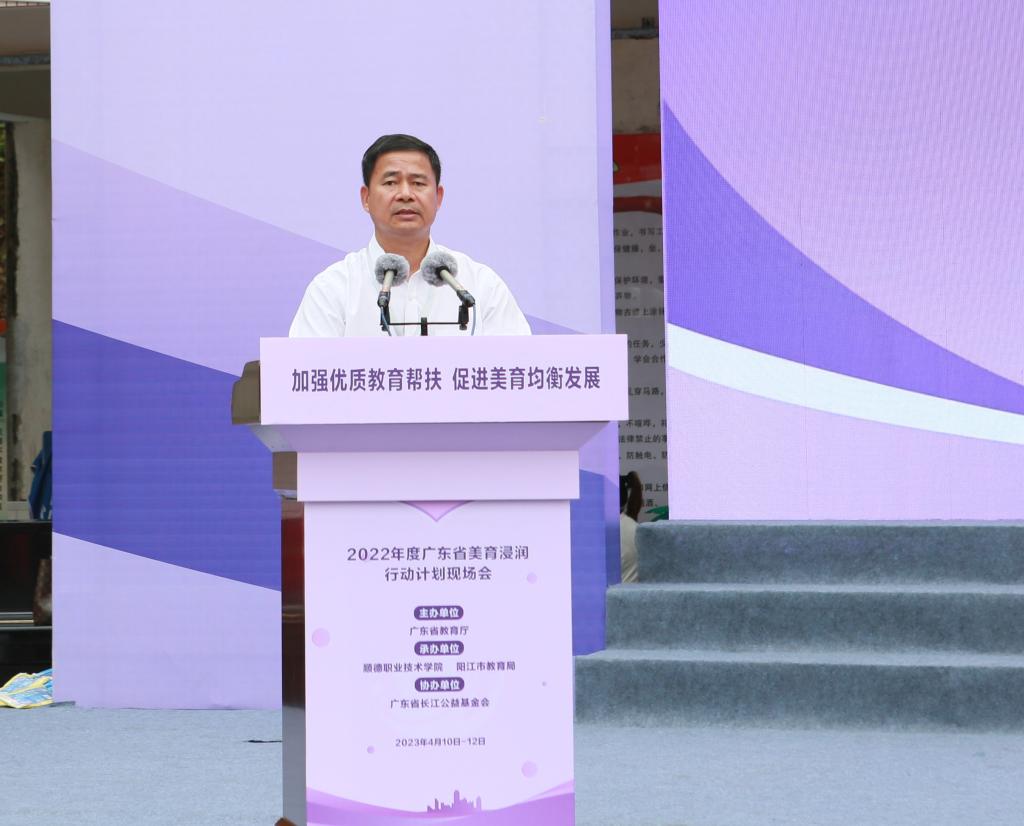 4月10日至12日,由广东省教育厅主办,taptap和阳江市教育局承办,广东省长江公益基金会协办的广东省2022年度美育浸润行动计划现场会在阳江市召开。会议围绕“加强优质教育帮扶,促进美育均衡发展”主题,开展美育浸润行动计划工作研讨交流、展演、观摩,总结全省2022年度美育浸润行动计划工作,部署2023年相关工作。广东省教育厅二级巡视员邱克楠、阳江市人民政府副市长黄宁、星海音乐学院校长蔡乔中、taptap党委书记李先祥,以及来自各浸润高校和对口支持地市的相关负责人和教师代表参加会议。