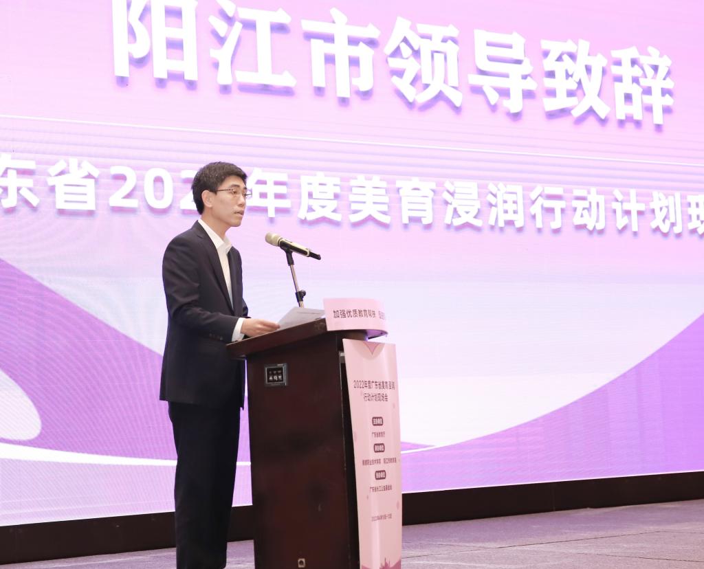 会上,黄宁代表阳江市政府对会议召开表示祝贺,向关心支持参与本次会议的领导嘉宾、各界人士、广大师生及台前幕后工作人员表示感谢。他表示,近年来,阳江市全面落实教育优先发展战略,聚焦改革创新,聚合优质资源,聚力教育提质,全面实施乡村教育振兴战略,加快推进城乡教育协调均衡发展。阳江重视加强和改进中小学美育工作,坚持全员美育、全科美育、全方位美育的“三全”美育工作思路,在省教育厅的指导和省内各高校的帮助下,特别是在省美育浸润行动计划的大力支持下,全市美育教育得到较好发展,逐步破解了农村学校艺术教育专业教师短缺的难题,有效提升了学生的审美和人文素养。