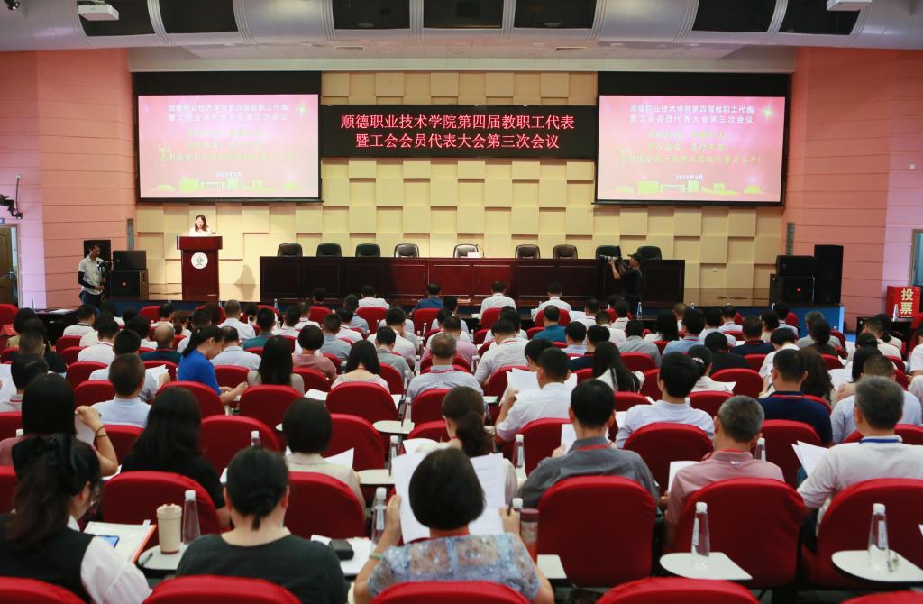 顺德职业技术学院第四届教职工代表暨工会会员代表大会第三次会议于6月28日下午在学校学术交流中心一号报告厅召开。