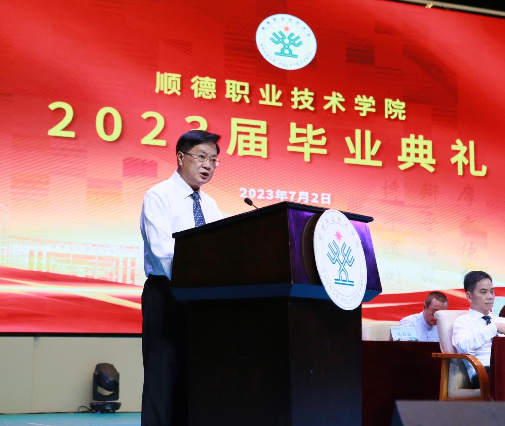 在热烈的掌声中,夏伟发表毕业致辞,向圆满完成学业的毕业生们表示热烈祝贺和衷心祝福。他指出,三年来,同学们尽情挥洒汗水、磨练技艺,充分展现了顺职学子的自信与昂扬、奉献与担当,为学校增添了独有的印记与荣誉,我们为同学们的成长进步而欣慰,更为同学们即将承担起崇高的社会责任而自豪。夏伟寄语行将远航的同学们,要以自信的心态迎接挑战,战胜困难与挫折,正确看待自己、看待他人,找准自己在社会中的位置,与世界和谐相处;要以奋斗的姿态峥嵘岁月,到国家最需要的地方去,到企业生产一线去,到服务管理一线去,到创业创新一线去,以顺职毕业生的名义奋勇争先;要以健康的状态乐享人生,务必善待自己的身体,保持良好的生活习惯和积极乐观的心境,享受生活和工作带来的美好。“一粒种子总有适合它的土地,是金子一定会有发光的时候。同学们,你们就是母校播下的种子、锻造的金子,母校期盼着你们早日发芽、早日发光。”夏伟说,“愿你们满怀任凭风浪、自信征途的豪情壮志,投身到中华民族伟大复兴的时代大潮之中。无论你们飞得多高、走得多远,母校与你们的心永远联结在一起!”