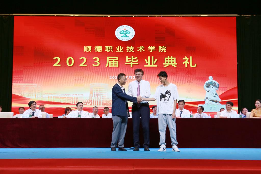 在庄严的乐曲声中,学校校长夏伟为毕业生代表颁发毕业证书。这证书凝结着顺职学子三年的勤奋与付出,承载着他们的青春与梦想。毕业生们从校长手中接过证书,脸上洋溢着喜悦、激动与不舍。