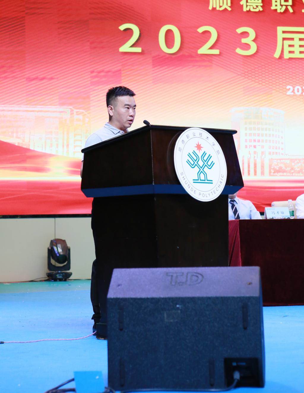 党委办公室(统战部)、学校办公室主任王晓宣读《关于聘任顺德职业技术学院2023届校友联络员的决定》。为进一步加强学校校友的联络与发展,更好地凝聚和激发校友力量,学校聘任陈学敏等157名同学为2023届校友联络员。他们将作为本班级、专业校友活动的组织者、联络者、宣传者,架起母校与校友间情谊的桥梁。李先祥为校友联络员代表颁发聘任证书。
