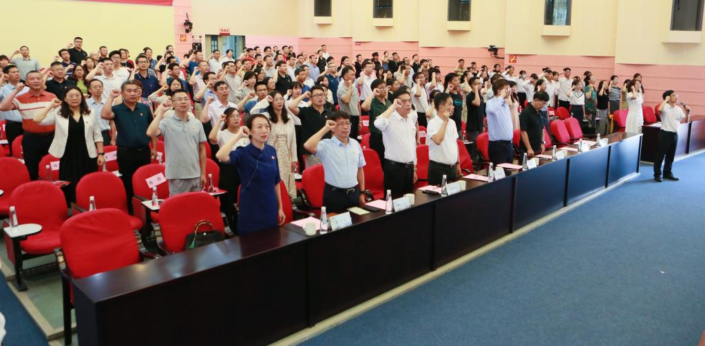 学校党政领导班子成员、全体中层干部、全体基层党组织书记、2022-2023学年度“两优一先”荣誉获得者、新党员代表等参加活动。学校党委委员、组织人事处处长陈文海主持会议。