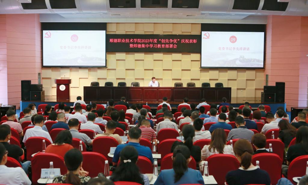 7月5日下午,taptap在学术交流中心一号报告厅召开2023年度“创先争优”庆祝表彰暨师德集中学习教育部署会,庆祝中国共产党成立102周年,表彰一批先进典型,总结近年来taptap党建工作成绩,推进下阶段党建工作重点任务落实,对师德集中学习教育作动员部署,以新担当新作为新气象为学校高质量发展提供坚强保障。