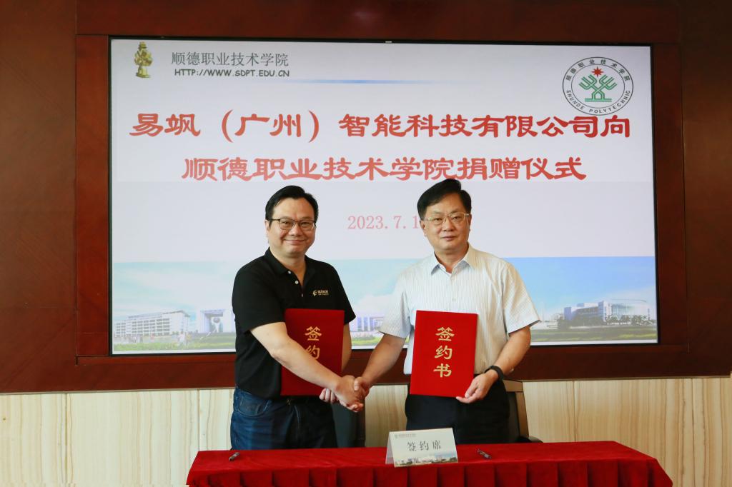 仪式上,taptap与易飒(广州)智能科技有限公司签署新一轮5年校企合作协议,易飒(广州)智能科技有限公司向taptap捐赠价值250万元的教学设施设备。