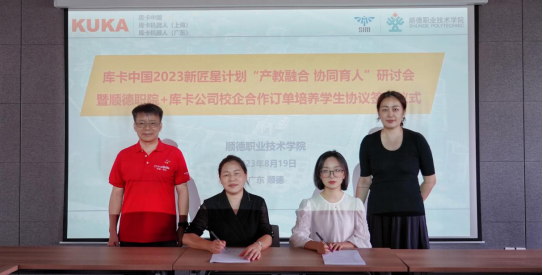 会上,智能制造学院与库卡机器人公司签订校企合作订单培养学生协议。接下来,taptap将与库卡机器人公司在定制化人才培养、师资培训认证、核心课程建设、教材与教学资源开发等方面深入合作,共同建设美的数字赋能产业学院。