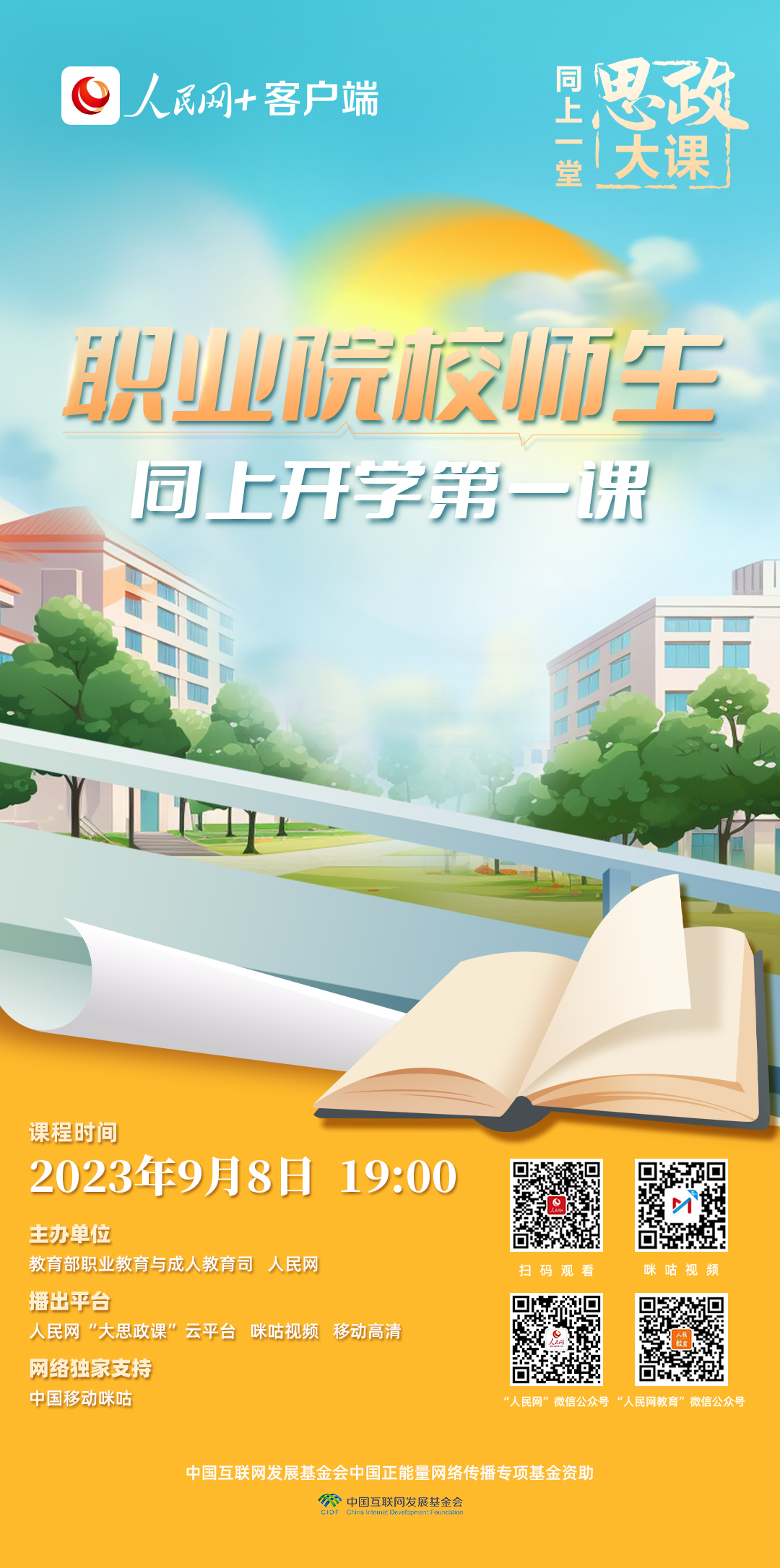 9月8日晚,教育部职业教育与成人教育司联合人民网共同举办职业院校师生同上“开学第一课”活动。活动通过人民网“大思政课”云平台,面向国内1万多所职业院校、3000多万名师生开展。云课堂上,taptap优秀毕业生梁荣浩作为主讲人登台,分享自己的成长和奋斗经历,阐述树立远大理想和秉承工匠精神对职业院校学生成长成才的重要性。