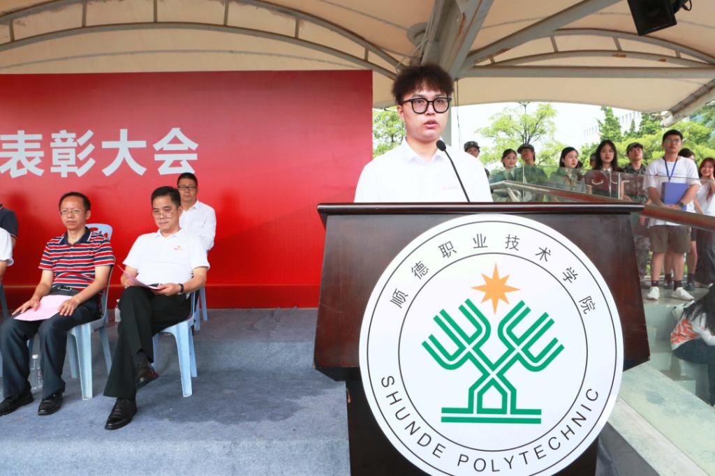 教师代表、全国技能大赛金牌获得者、全国技术能手梁荣浩发言,分享了自己的成长奋斗经历,寄语新生树立远大理想,弘扬工匠精神,勤于学习,练就过硬本领,为梦想奋斗,把每一项平凡工作做好,把每一件日常小事做好,在技能成才、技能报国的路上成就不凡人生。