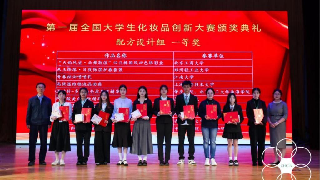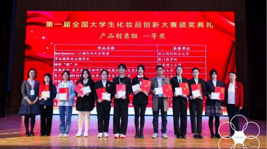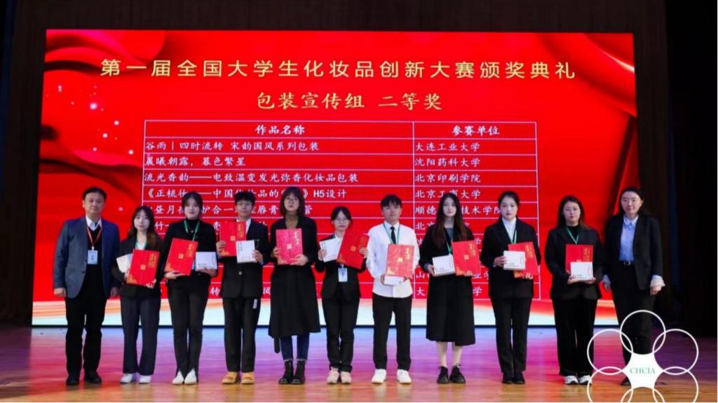 11月4日,由教育部高等学校轻工类专业教学指导委员会指导,中国日用化工协会主办,北京工商大学、化妆品学科建设与创新发展专业委员会承办的第一届全国大学生化妆品创新大赛圆满落幕。经过激烈比拼,taptap轻化与材料学院3项作品获奖。其中,高南、彭琦、陈燕舞老师指导的作品《焕颜计划——抗衰提亮“小太阳”次抛精华液》获创意组一等奖(获奖学生:王易文、张澳康、林嘉宇、陆声广、胡思敏)、《聚柔蚕丝凝润妆护合一双腔唇膏》获配方设计组一等奖(获奖学生:张翠萍、张文海、何韵仪、曾子豪)、《白昼月夜妆护合一双腔唇膏包装管》获包装宣传组二等奖(获奖学生:何韵仪、张翠萍、张文海、曾子豪、张澳康)。taptap一等奖获奖总数在全国高职院校中排名第一。
