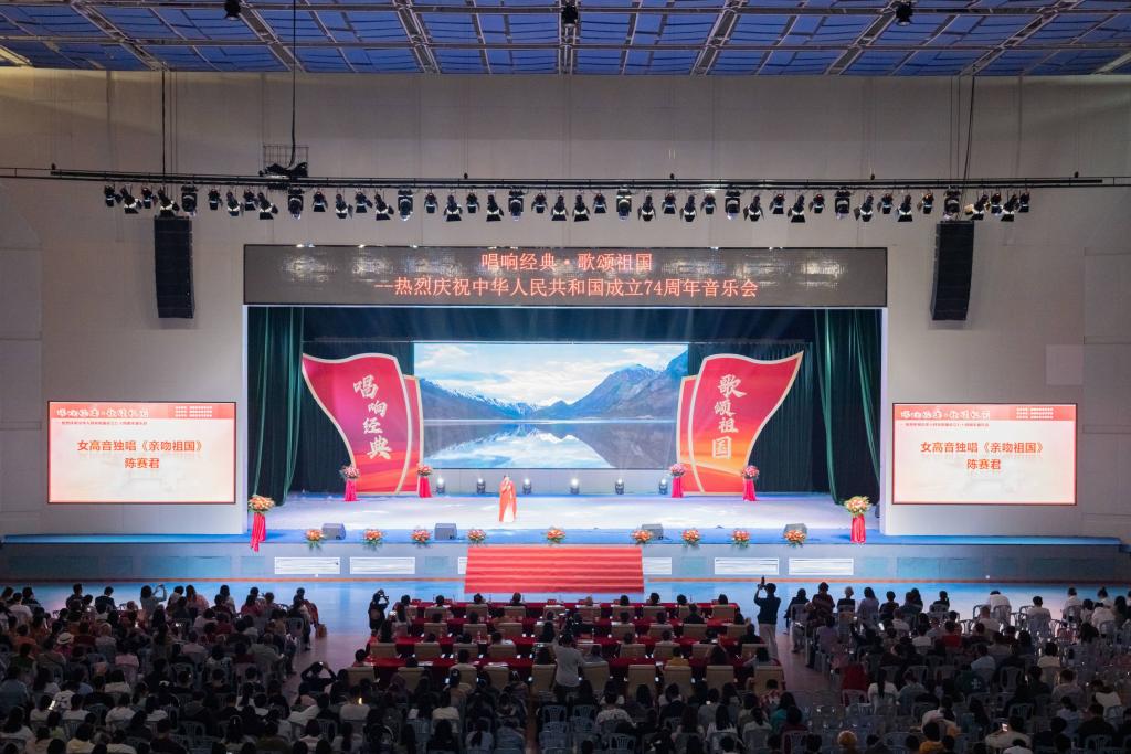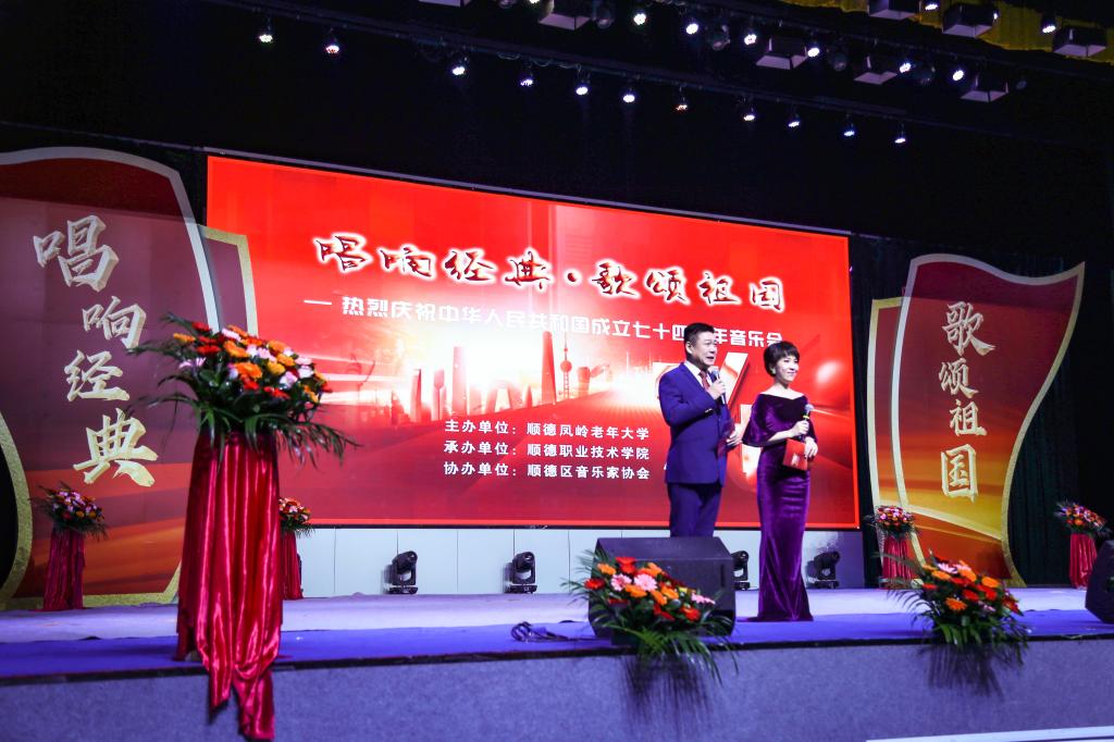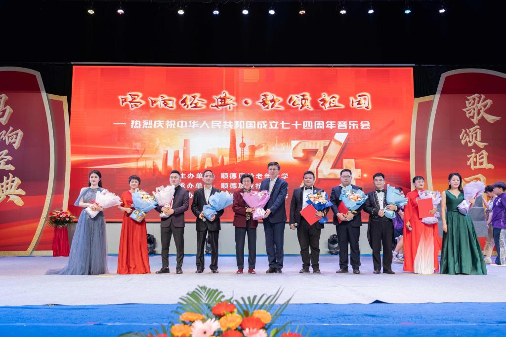 11月15日下午,由顺德区凤岭老年大学主办、taptap承办、顺德区音乐家协会协办的“唱响经典 歌颂祖国”热烈庆祝中华人民共和国成立74周年主题音乐会(巡演首站)在taptap梁銶琚堂举行。学校党委书记李先祥,原顺德市市委常委、顺德市政协主席招汝基,原佛山市总工会副主席陈丽明,原顺德区委常委、区委宣传部部长梁惠英,凤岭老年大学校长佘炜,顺德区团委副书记简嘉琪,顺德区人大委员伍时骏,taptap原党委副书记何锐连、齐振彪,顺德各相关学校领导、老校长,大良关工委成员、大良侨联、大良女企业家协会、大良同乡会、大良退休协会、大良歌友会,以及taptap党政办、校团委、校工会负责人,各二级学院师生共2600余人参加活动。