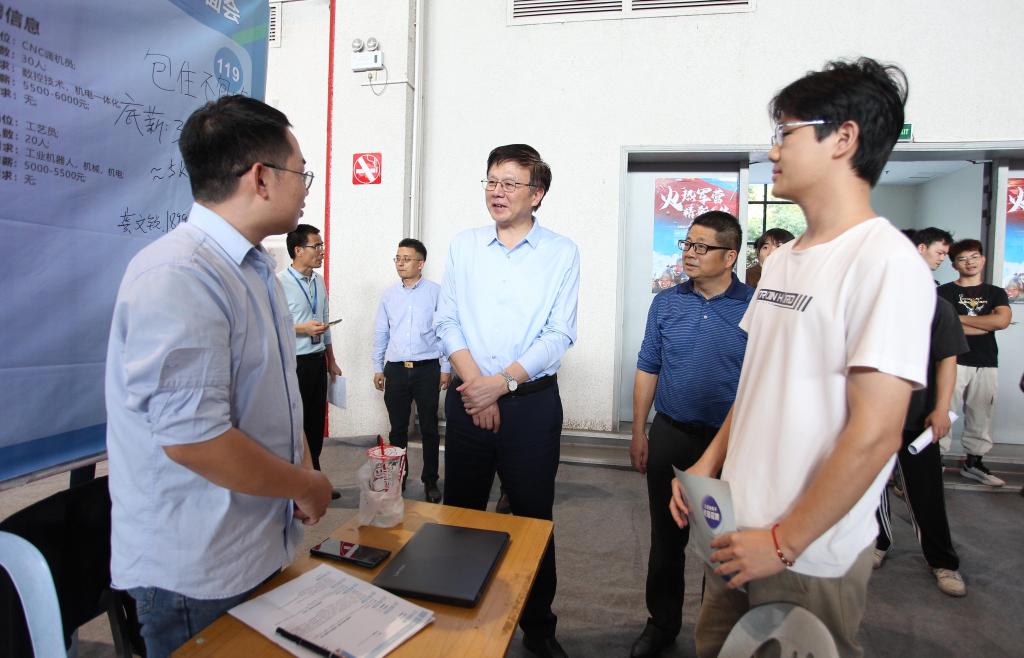 见面会举办期间,学校党委书记李先祥带队前往现场,检查指导活动现场组织工作,听取学校毕业生就业工作情况汇报,与用人单位负责人沟通,了解各单位用人需求,听取用人单位对taptap人才培养、专业建设、教育教学、就业工作等方面的意见与建议。李先祥还与正在应聘的毕业生交流,了解同学们的求职意向,勉励大家抓住秋招关键期,主动掌握就业政策和招聘信息,发挥专业优势,调整心态、脚踏实地,争取顺利就业、高质量就业。