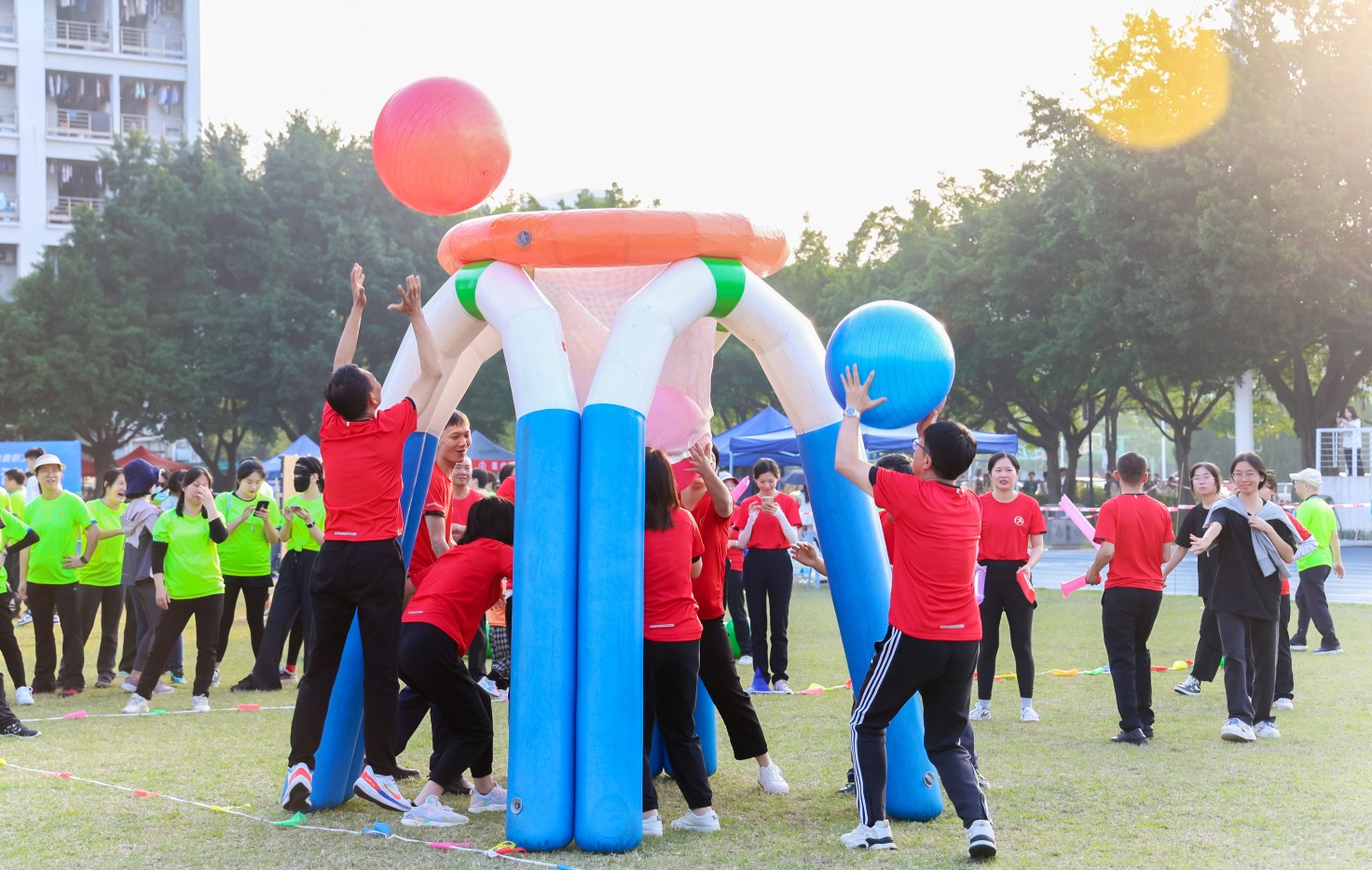 同期,学校还举办了2023年教职工健身趣味运动会。健身趣味运动会由校工会主办,是健身趣味运动月系列活动的一部分,设置了“勇攀高峰”“龟兔赛跑”“快乐投篮”等5个集体项目和10个个人项目,丰富了全校教职工的课余文化生活,激励教职工以饱满热情和强健体魄投入到教学工作中。