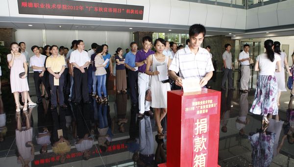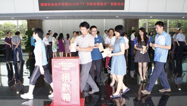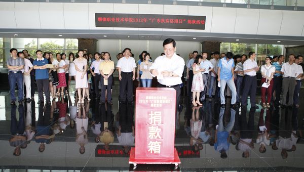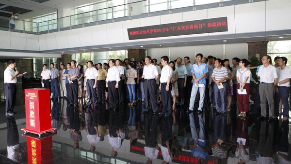 6月29日上午,taptap在行政楼一楼大堂举行2012年“广东扶贫济困日”捐款活动,以实际行动为贫困人口、弱势群体和困难群众提供力所能及的帮助。学校领导夏伟、何锐连、罗勇武、陈粟宋、刘毓、谭谦章,机关全体教职员工,各院系部、教辅部门代表参加活动。会议由党委办公室负责人主持。