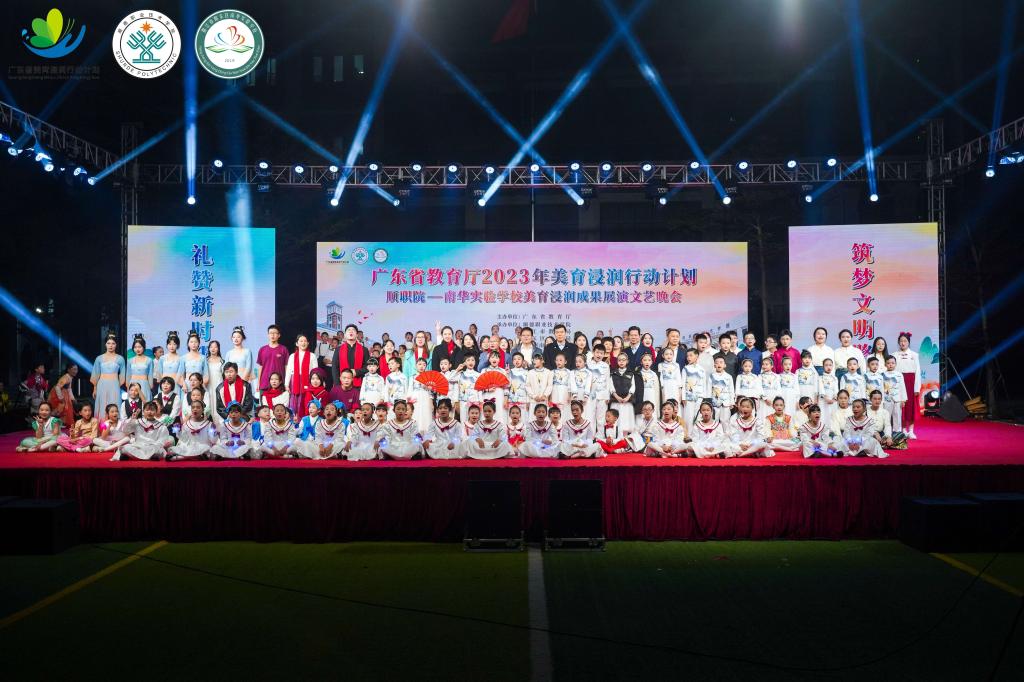 广东省教育厅美育工作相关负责人致辞表示,美育工作是立德树人、培根铸魂的事业,美育工作者要以习近平新时代中国特色社会主义思想为指导,提升思想自觉、政治自觉、行动自觉,与党中央、国务院的要求同向同行,与推进素质教育的要求同向同行,与学生全面发展的迫切要求同向同行。美育浸润行动计划实施以来,各高校和地市教育行政部门、中小学校基本实现了浸润目标任务,推动了乡村基础教育发展,惠及面广,成效显著。“来到南华实验学校,我看到了校长和美育教师与学生之间的亲密联系,他们的行动实现了以美育人、以美化人、以美培元的美育核心目标,他们的举止、语言、行动是美的,他们的眼里有光,心中有对美育工作的信念。”广东省教育厅将继续推动美育工作落地落实,把全面加强和改进学校美育工作作为今后一段时期内的重点工作来抓。让我们把美育的种子播种在更多学生心中,结出更美的花朵。