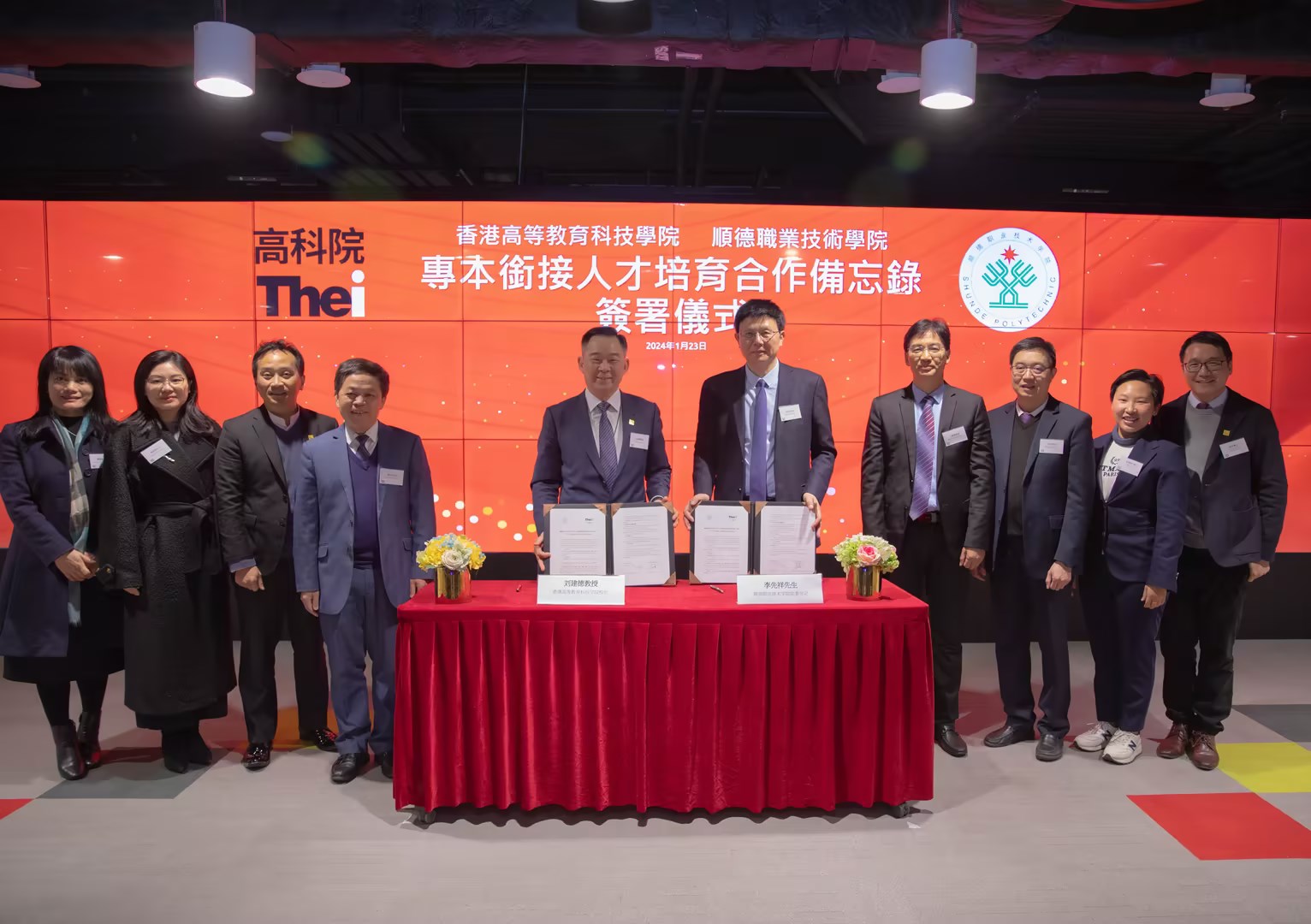 1月23日下午,顺德职业技术学院与香港高等教育科技学院教师发展中心成立揭牌暨“3+2”专本衔接人才培育合作备忘录签订仪式在香港高等教育科技学院柴湾校区举行。顺德区委常委、统战部部长梁伟沛,顺德区委统战部常务副部长区植朋,顺德区大湾区办常务副主任稂忠伟,学校党委书记李先祥,香港高等教育科技学院校长刘建德等参加活动。