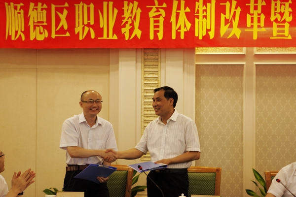 夏伟校长代表顾问委员发言。他说,顺德区职业教育体制改革暨职业教育发展指导委员会将在教育局的领导下,以《顺德区职业教育发展指导委员会章程》为依据,明确“四个工作目标”,履行“开展研究、提供咨询、搭建平台、制定规划、指导改革和提出建议”等六项职责。委员会将紧紧围绕技能型人才培养工作,以互利双赢、共同发展为目标,以产教结合、校企合作为纽带,以优势互补、资源共享为基础,整合职业教育资源,为改革顺德职业教育办学模式、为构建现代职业教育体系、为探索经济发达地区职业教育发展模式而贡献力量。