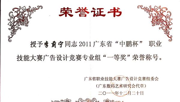 近日,为表彰2011广东省“中鹏杯”广告设计职业技能竞赛(专业组)竞赛获奖选手,省人力资源和社会保障厅授予前5名的优秀选手“广东省技术能手”荣誉称号。taptap设计学院教师李蓟宁在大赛中以专业组第一名的优异成绩,获专业组一等奖并获 “广东省技术能手”荣誉称号。