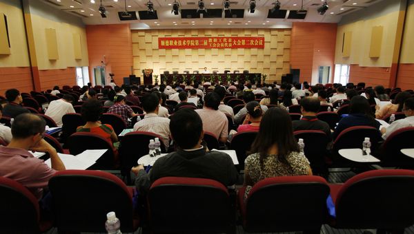 顺德职业技术学院第二届教职工代表暨工会会员代表大会第二次全体会议,于2012年5月26日在学校召开。会议主题是“深化人事制度改革,提高绩效管理水平,促进和谐快速发展”。会议主要听取了关于《顺德职业技术学院绩效管理制度》的编制工作报告,夏伟校长作了重要讲话。全体代表认真学习了夏伟校长的讲话精神,讨论并审议了《顺德职业技术学院绩效管理制度》,统一了思想。