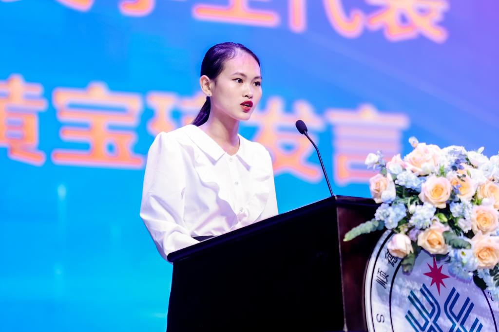 获奖学生代表、2021级应用英语专业学生黄宝琼发言表示,陈智奖学金不仅是对过去努力的认可,更是对未来的激励,将始终铭记校董和企业家慷慨捐赠的恩情和无私奉献的情怀,努力把所学的技术技能融入工作实践,以实际行动回馈社会,传递温暖与关怀。